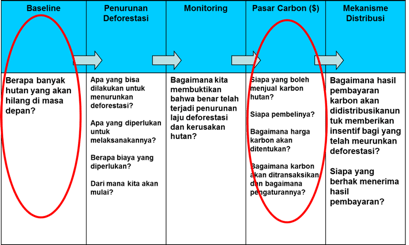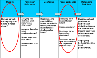 - Sebuah baseline (rujukan) yang merupakan dasar bagi pengurangan deforestasi dan degradasi;